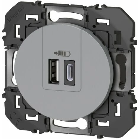 Double chargeur USB 1 Type A + 1 Type C Dooxie 3A – Aluminium – Legrand.