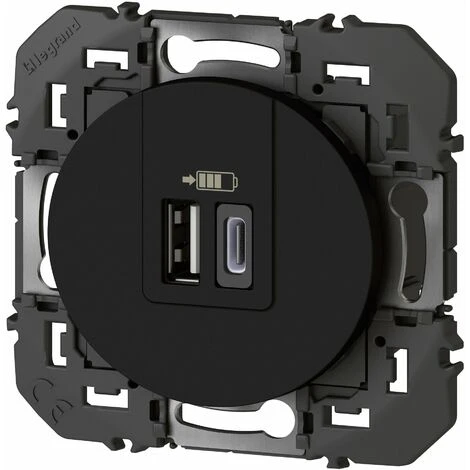 Double chargeur USB 1 Type A + 1 Type C 3A Dooxie – Noir – Legrand.