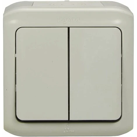 Interrupteur double en saillie résistant à l’humidité et aux éclaboussures (IP44), montage mural – White Standard – Legrand 782381 Forix.