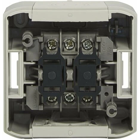- Double interrupteur en saillie pour une tension nominale de 240 V et un courant nominal de 10 ampères.