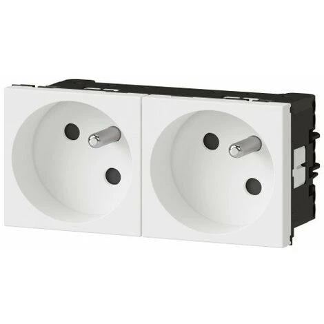 Legrand Double Prise de Courant à Puits Inclinés 45° Mosaic Link à Raccordement Latéral, 4 Modules, Blanc.