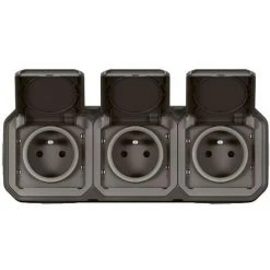 LEGRAND Triple Prise De Courant Horizontale Avec Volet Plexo Complet Saillie – Gris (070014)