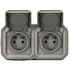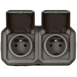 LEGRAND Double Prise De Courant Horizontale Avec Volet Plexo Complet Saillie – Gris (070005)