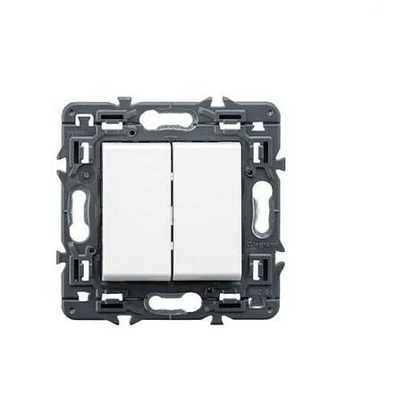 Valena Next inverseur unipolaire double 10 AX – 230 V. Bornes automatiques, blanches. Les mécanismes d éclairage Valena Next sont livrés avec une façade finie à équiper de plaques de finition, montage avec vis ou griffes.