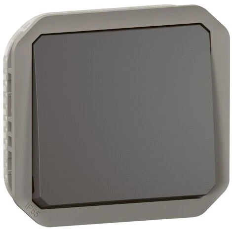 Interrupteur ou va-et-vient étanche Plexo 10AX 250V~ IP55 IK08 à équiper de support plaque ou boßtier saillie, livré avec enjoliveur finition anthracite