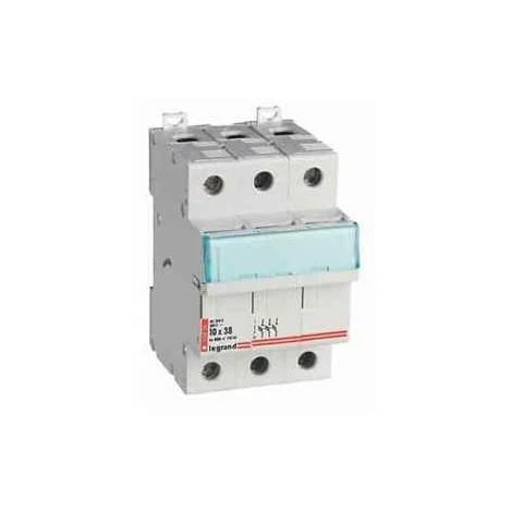 Caractéristiques générales : Pour cartouches cylindriques industrielles type aM ou gG – Conformes à la norme NF HD/IEC 60269-2 et à la NF C 63-210 et 60-200-2 Sectionneurs suivant NF EN/IEC 60947-3 Icc : – 20 kA avec cartouche 8 x 32 mm – 100 kA avec cartouche 10 x 38 mm Livrés sans cartouche. Caractéristiques produit : Tripolaires – Dimensions cartouches : 10 x 38 (mm) – Tension ~ : 500 (V) – Nbre de modules : 3.