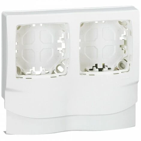 Cadres appareillage saillie. Pour pose le long de la moulure. 2 postes. Hauteur du câble pour plinthe: 20 mm. Profondeur du câble pour plinthe: 75 mm
