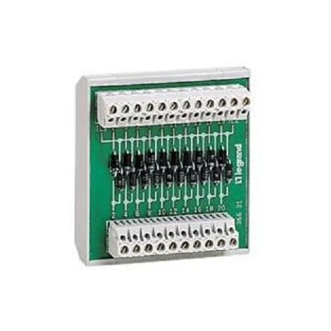 Caractéristiques générales : Modules à diodes. Permettent le découplage de signaux (tests lampes) ou collecteur dinformations (centralisation de défauts), sauf voyants à LED Raccordement câble souple 2,5 mm2 Tension dutilisation (groupe C-VDE 0110) : mini 1,5 V, maxi 300 V Equipés de diodes 1 N 4007 type 1 A. Caractéristiques produit : Fixation sur rails asymétrique et symétrique. Test lampes avec centralisation de défaut (10 sorties).