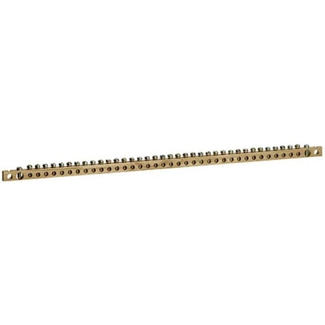 Raccordement des conducteurs de protection. Barreau laiton pour conducteurs de protection. Longueur 456 mm, section 12 x 6,5 mm : – 36 trous Ă5,3 mm (1,5 Ă 10 mmÂČ) – 2 trous Ă9 mm (35 mmÂČ) – 4 trous Ă6,5 mm (2,5 Ă 16 mmÂČ) Se fixe sur les montants fonctionnels Ă laide des pattes fournies