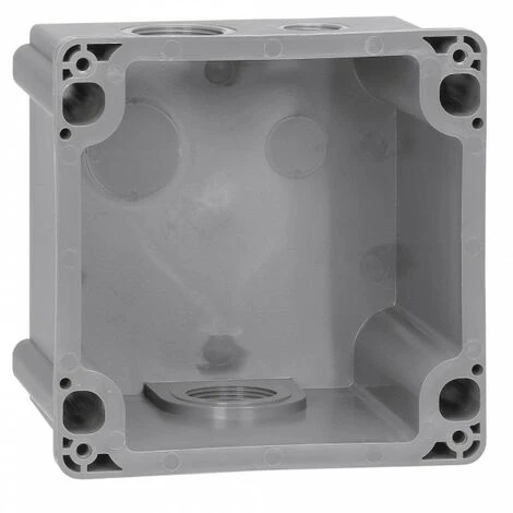 Permettent la coupure par bouton-poussoir Dispositif pour condamnation par 3 cadenas Ø8 mm maxi IP 44 en connexion. IP 55 volet fermé. Permettent la réalisation de socles de Prisinter en saillie 63 A. 2 entrées m³2 dont 1 obturée par 1 bouchon B 32P et 1 entrée M20 obturée par 1 bouchon B 20P. Hauteur: 143mm. Profondeur: 100mm. Largeur: 143mm.