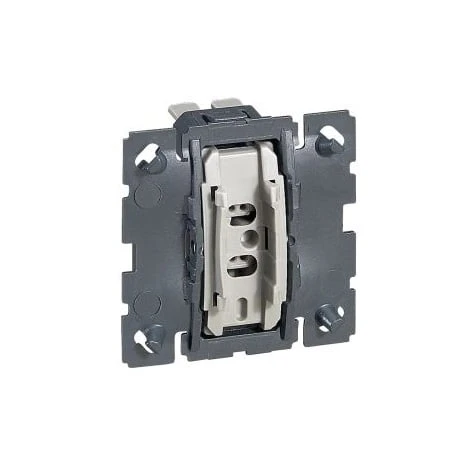 Interrupteurs et va-et-vient. Commande VMC 2 vitesses. Va-et-vient 10 AX 230 V~. Devient: A associer aux voyants pour fonction témoin ou lumineux et enjoliveur réf. 680 03 (blanc) ou 683 03 (titane) ou 679 03 (graphite). Double va-et-vient, en associant 2 mécanismes réf. 670 01 et 1 enjoliveur réf. 680 02 (blanc) ou 683 02 (titane) ou 679 02 (graphite). Avec porte-étiquette et voyant avec lampes et enjoliveur réf. 680 14 (blanc) ou 683 14 (titane) ou 679 34 (graphite).