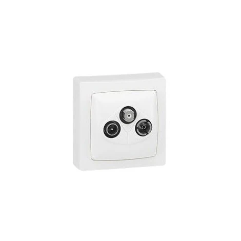 Prises tĂ©lĂ©vision: Connecteur TV male et R femelle 9,5 mm, SAT  »F ». CĂąble recommandĂ© 17 V (affaiblissement 17 dB sur 100 m). Distribution des signaux TV et Radio tous opĂ©rateurs selon exigences du code de la construction et de l’urbanisme R 111-14 rĂ©glementant les immeubles collectifs. Installation en Ă©toile selon exigences de la norme NF C 15-100 et guide UTE C 90483. Prise TV-R-SAT: Prise faible attĂ©nuation < 1,5 dB adaptĂ©e Ă la rĂ©ception hertzienne TNT, satellite ou par rĂ©seau cĂąblĂ©.