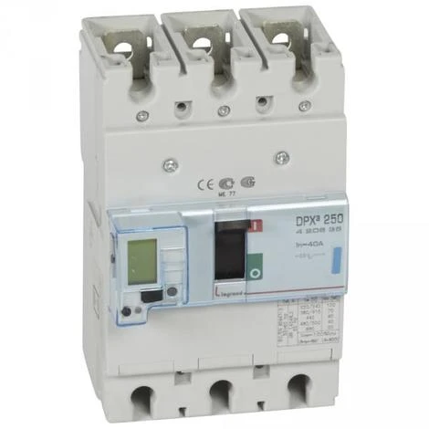 Caractéristiques générales : Disjoncteurs électroniques – Protection contre les surcharges : Ir réglable de 0,4 à 1 In – Tr réglable de 3 à 15 s. Protection contre les courts-circuits : Isd réglable de 1,5 à 10 Ir – Tsd réglable de 0 à 0,5 s. Caractéristiques du produit : Pouvoir de coupure Icu 70 kA (400 V~) – Nombre de pôles : 3P – ln : 40 A.