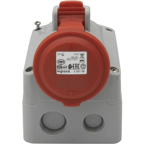 Prise SUPERCOMPACT 16A 3 pĂŽles+terre 415V IP44. Bases de montage en saillie