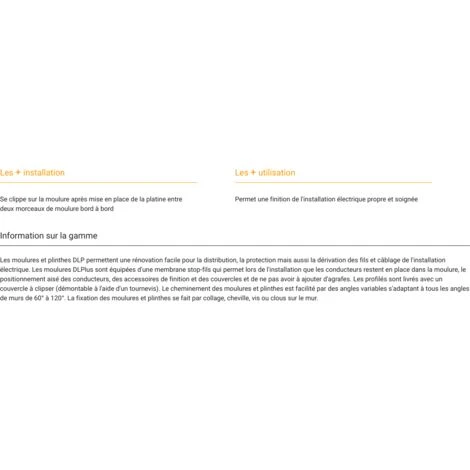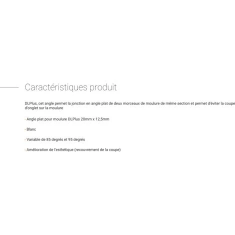 DLPlus, cet angle permet la jonction en angle plat de deux morceaux de moulure de mĂȘme section et permet d’Ă©viter la coupe d’onglet sur la moulure.