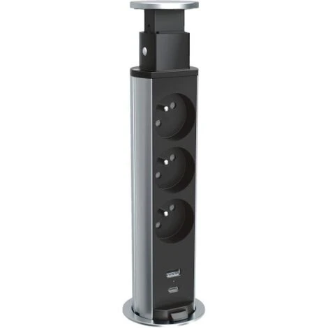 bloc prise escamotable incara tower 3 pc 2+t usb a+c cordon 2 m