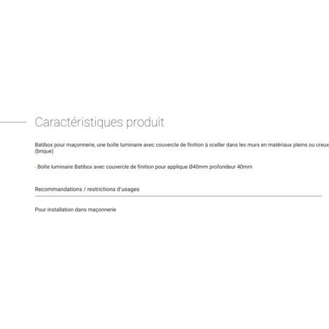 Batibox pour maçonnerie, une boßte luminaire avec couvercle de finition à  sceller dans les murs en matériaux pleins ou creux (brique).