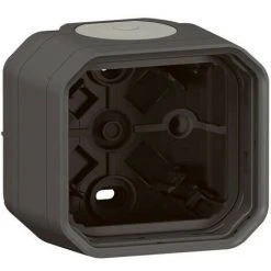 Boîtier 1 poste étanche Plexo pour l’installation en apparent de toutes les fonctions Plexo, équipé de 2 embouts à membrane souple 1 entrée – finition anthracite