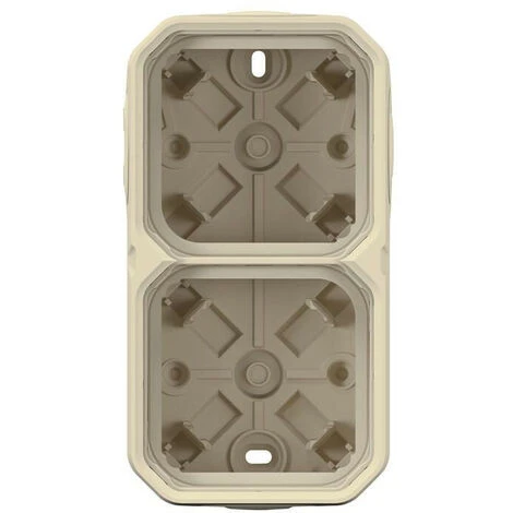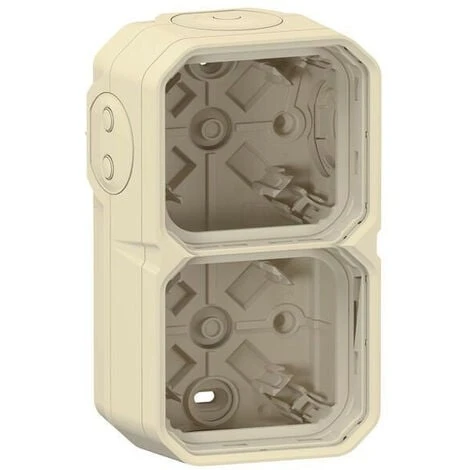 BoĂźtier saillie Ă©tanche Plexo 2 postes pour montage horizontal ou vertical, sans cloison, avec 3 embouts Ă membrane amovible et perforable sans dĂ©coupe 1 entrĂ©e et 1 embout 2 entrĂ©es – sable