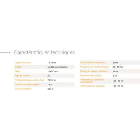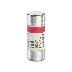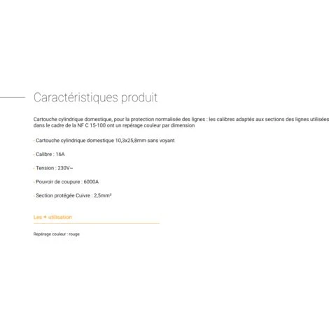 Cartouche cylindrique domestique, pour la protection normalisée des lignes : les calibres adaptés aux sections des lignes utilisées dans le cadre de la NF C 15-100 ont un repérage couleur par dimension.