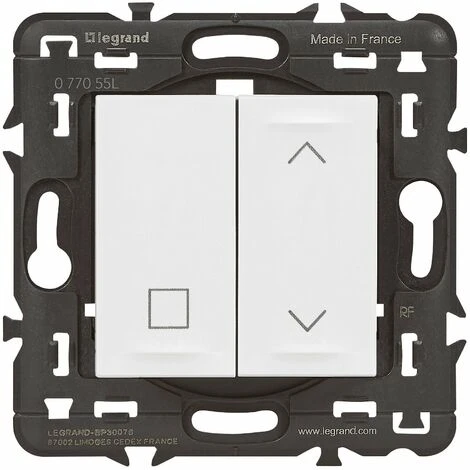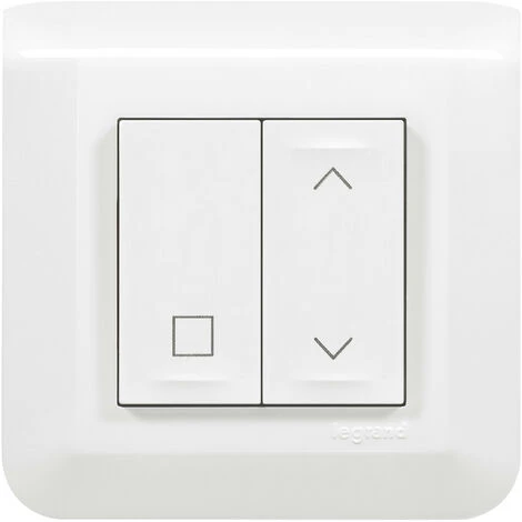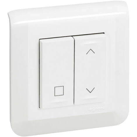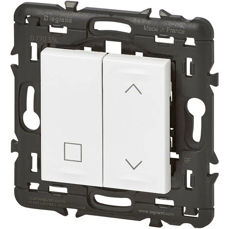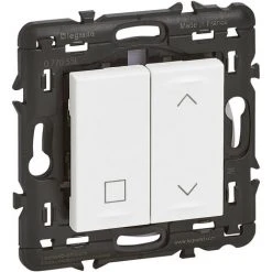Commande pour volet roulant sans fils, sans pile Self-e pour contrĂŽler 1 ou plusieurs commandes filaires Mosaic with Netatmo – livrĂ©e avec fixations autocollantes, support et enjoliveur finition blanc, Ă Ă©quiper d’une plaque de finition