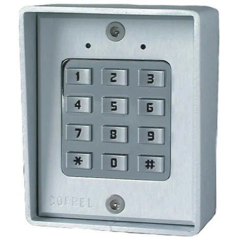 Touches métalliques gravées – 50 codes – 2 sorties indépendantes – Programmation directe par le clavier, protégée par un code maître interchangeable – Touche 0 pour commande gâche jour – Mémoire permanente permettant la sauvegarde des données.