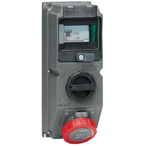 Coffret monoprise Hypra IP66/67 – 55 – 1 prise 3P+N+T 32A 380V~ à 415V~ , 1 interrupteur et 1 disjoncteur