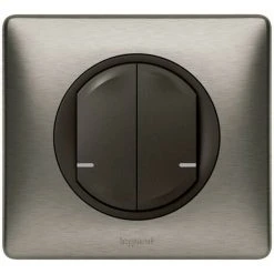 Commande double sans fils ON/OFF pour éclairage et prises connectés Céliane with Netatmo pour intallation connectée livrée complète avec support, enjoliveur et plaque finition graphite