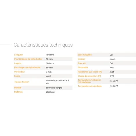Couvercle carré: 100x100mm