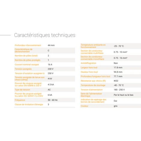 Disjoncteur DNX³ uni + neutre 230V~ pouvoir de coupure :