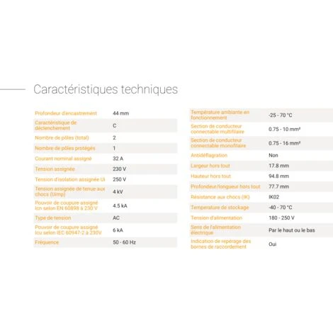 Disjoncteur DNX³ uni + neutre 230V~ pouvoir de coupure :