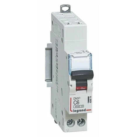 Disjoncteur DNXÂł 4500 – auto/vis – U+N 230V~ 6A – 6kA – courbe C – 1 module