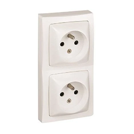 Livraison offerte à partir de 90 euros d’achats chez ce marchand. Double prise 2 pôles avec terre boîtier vertical/horizontal. Série les apparents. Prise 2 pôles + terre double. Saillie blanc-boîtier. Vertical/horizontal. Fixation murale en saillie par vis. Vis non fournies. 10 ampères. 230 volts. 2300 watts maximum.