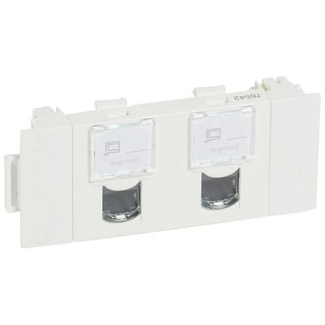 Double prise RJ45 catĂ©gorie5e FTP spĂ©ciale goulotte Ă clippage direct Mosaic 3 modules – blanc