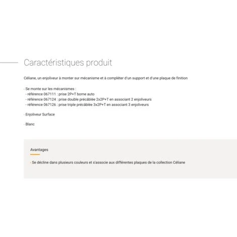 – rĂ©fĂ©rence 067126 : prise triple prĂ©cĂąblĂ©e 3x2P+T en associant 3 enjoliveurs.