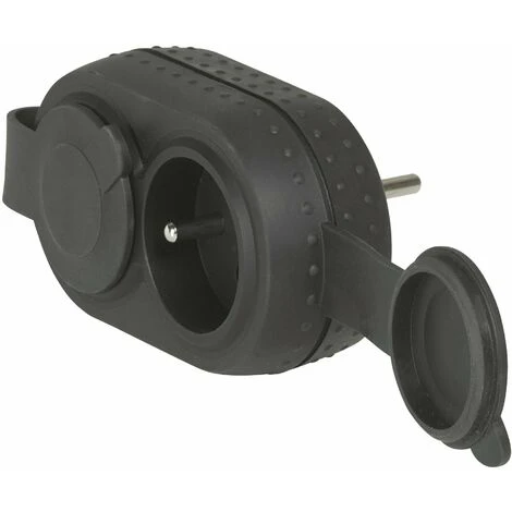 Fiche multiprise coutchouc avec 2 prises de courant 2P+T 16A 230V avec 2 sorties frontales antichoc avec bouchons IP44 – noir