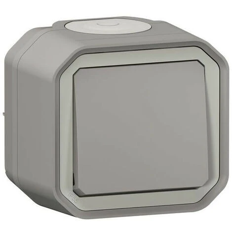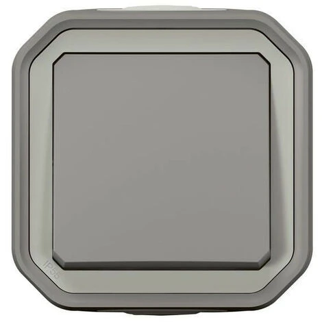 Interrupteur ou va-et-vient étanche Plexo 10AX complet livré avec boîtier saillie pour montage en apparent – gris