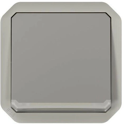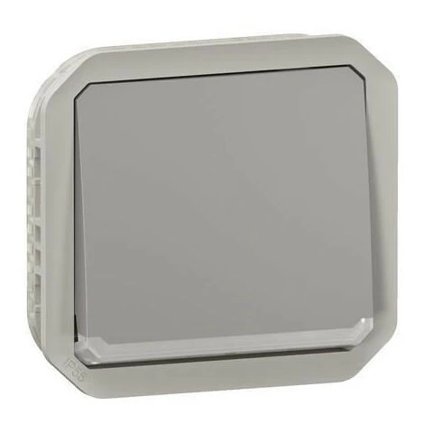 Interrupteur ou va-et-vient tĂ©moin Ă©tanche Plexo 10AX, livrĂ© avec voyant, Ă Ă©quiper d’un boitier pour montage en apparent ou d’une plaque support pour montage en encastrĂ© – finition gris