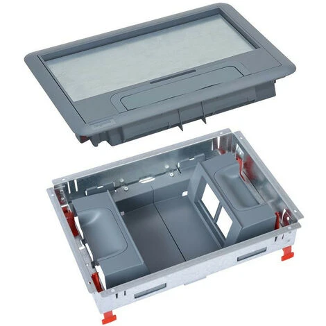 Kit boite de sol complet composé de : cadre + couvercle plastique amovible + supports verticaux 8 modules idéal en cas de faible profondeur – adaptée à tous types de sol (planchers techniques, chapes béton)