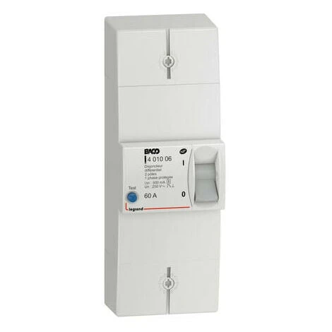 Disjoncteur d’abonné Basse Tension BACO bipolaire 250V~ pour tarif à puissance limitée (tarif bleu) de 3kVA à 36kVA – Intensité nominale : 60A