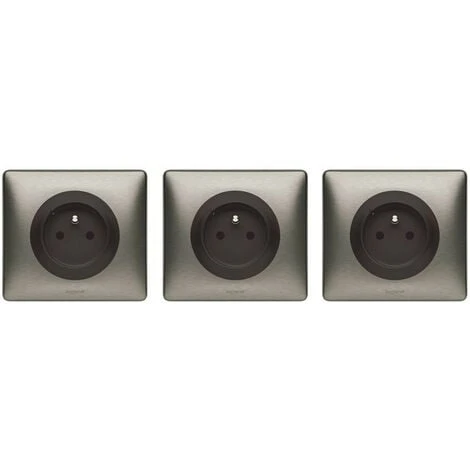 Pack de 3 prises de courant avec terre connectées Céliane with Netatmo 16A 3680W avec fonction mesure, suivi de la consommation et envoi de notifications – livrée complète avec support, enjoliveur et plaque finition graphite
