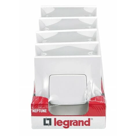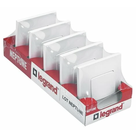 Pour une rénovation simple et robuste, choisissez des interrupteurs et prises Neptune. La gamme d’appareillage monobloc Neptune Legrand est vendue prête à poser, de couleur blanche. Neptune de Legrand propose un design simple et moderne. Interrupteur simple ou va-et-vient s’il est associé à un second interrupteur. L’interrupteur Neptune Legrand est vendu complet, prêt à être installé.