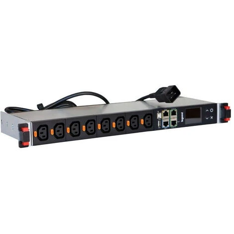 PDU 19 pouces 1U avec affichage sur écran LCD couleur intégré et mesure de l’énergie sur 1 phase 16A équipé de 12 prises C13 et cordon longueur 3m avec fiche C20