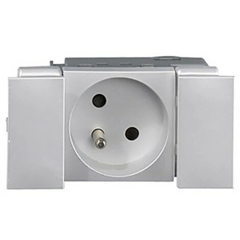 Prise 2P+T appareillage 45 Logix à connexion auto – livrée avec 2 Normaclips – finition aluminium