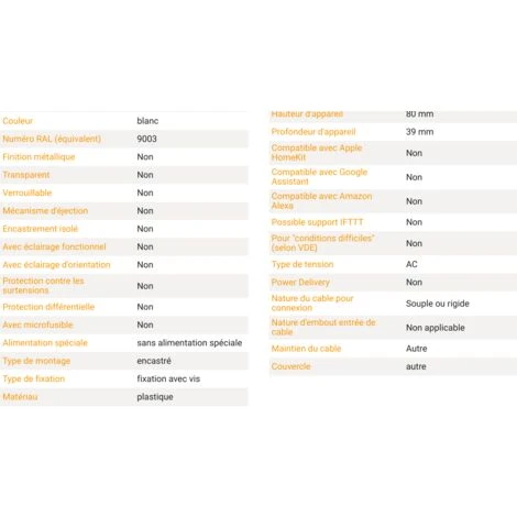- Format de prises: Simple