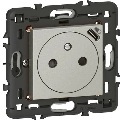 Prise de courant 2P+T Surface avec chargeur Type-C intégré en face avant Mosaic 2 module alu livré avec support