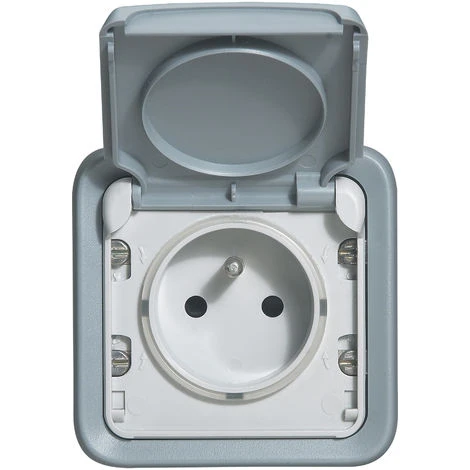 Livraison offerte Ă partir de 90 euros d’achats chez ce marchand. Prises de courant avec terre complet. Avec volet de protection IP 55. Prises Ă©clips testĂ©es pour rĂ©sister Ă 10000 manoeuvres. 16 AmpĂšres, puissance maxi 3 680 Watts en 230 olts~. Appareillage Plexo livrĂ© complet sous film EtanchĂ©itĂ© renforcĂ©e. Indice de protection (IP) : 55 : convient pour extĂ©rieur et locaux humides. MĂ©canismes Ă©quipĂ©s de bornes automatiques pour raccorder les fils sans outil 1 entrĂ©e par embout d’Ă©tanchĂ©itĂ© perforable pour cĂąble ou tube.