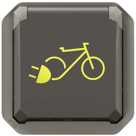Prise de courant 2P+T étanche Green’up Access pour recharge de vélo électrique Plexo 16A 230V à équiper de support plaque ou boîtier saillie, avec enjoliveur anthracite