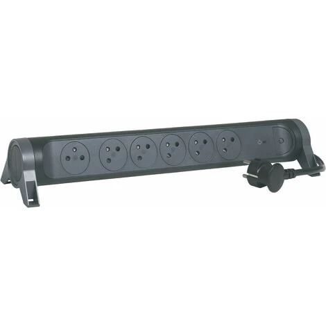 Multiprise 6 prises de courant affleurantes franco-belge. Multiprise rotative et fixable avec parafoudre. Essentiellement pour un usage au bureau. Cordon en PVC noir de 1,5M de long et 1mm² de section.