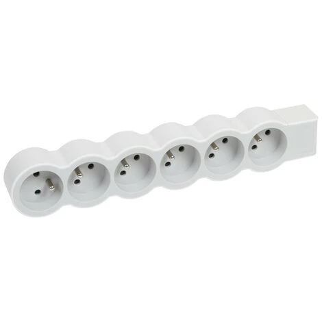 Multiprise 6 prises de courant. Couleur blanc et gris clair. Design & qualité par Legrand France.